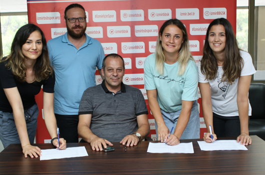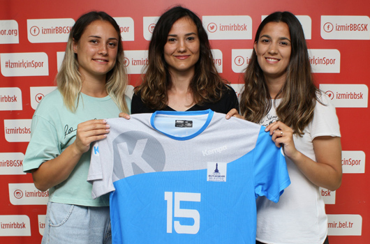 KADIN Hentbol Takımımızda Ece Sözmen ve Sibel Kıcıroğlu’nun sözleşmelerini birer yıl uzatırken, Kastamonu Belediyespor’dan eski oyuncumuz Yasemin Güler’i de yine bir yıllığına kadromuza kattık.KADINLAR Hentbol Süper Lig’de mücadele eden İzmir Büyükşehir Belediyespor, yeni sezon öncesi takviye çalışmalarına hız verip üç oyuncu ile sözleşme imzaladı. Mavi-beyazlılar iç transferde Ece Sözmen (26) ve Sibel Kıcıroğlu’nun (25) sözleşmelerini birer yıl uzatırken, Kastamonu Belediyespor’dan Yasemin Güler’i de yine bir yıllığına kadrosuna kattı. Üç sporcunun imza törenine Genel Sekreter Mustafa Ağme ile Sportif Direktör Saffet Türksoyuer katıldı. İzmir Büyükşehir Belediyesi Gençlik ve Spor Kulübü’nde yetişip son dört sezonu Kastamonu Belediyespor’da geçiren Yasemin Güler, “İzmir’e ve yuvama yeniden döndüğüm içim mutluyum. Başarılı olmak için takım arkadaşlarımızla ter dökeceğiz” dedi.