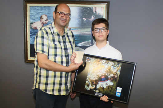 Pandemi sürecinde iki altın, iki bronz madalya kazandıklarını belirten Takım Kaptanı Murat Kaptan, Başkan Ersan Odaman’a 2020’de başarılarının daha da artacağının sözünü verdi. Odaman ise su altı takımının özellikle İzmir Körfezi’nde çektiği fotoğraflarla denizdeki canlı çeşitliliğini ve suyun temizliğini gözler önüne serdiğini dile getirdi. Genel Sekreter Mustafa Ağme ile Branş Sorumlusu Ceren Kilislioğlu’nun da hazır bulunduğu ziyarete ülkemizin en genç ödüllü su altı fotoğrafçısı Derin Ergün ile Hülya Doğan'ın dalış eşi Efe İsmail Akçakayalıoğlu katıldı.