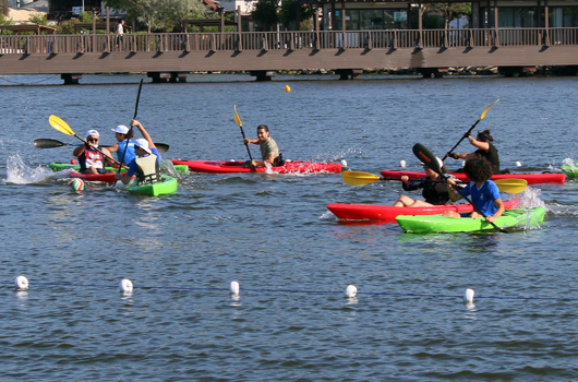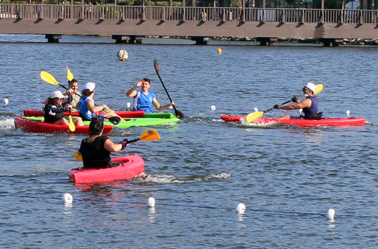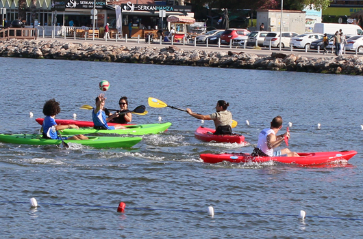 KULÜBÜMÜZÜN Kano ve Kürek Takımı, kano ile sutopunun birleşmesinden doğan kanopoloyu oynayan ilk ekip oldu. İZMİR Büyükşehir Belediyespor, su sporlarında yine bir ilke imza attı. Dünya’da kanopolo adı altında oynatılan aktivite, Türkiye’de ilk kez İnciraltı’ndaki İzmir Kayıkları, Yelken ve Kano Tesisi’nde kulübümüz sporcuları tarafından yapıldı. İnciraltı’nda su sporlarında hizmet veren eğitmenler ve kursiyerler, kano ile su topunu birleştirilen kanopoloyu ilk kez oynamaya başladı. Kanolarla suya inen oyuncuların mücadelesi görülmeye değerdi. Topa bir kez dokunma hakları olan sporcular, küreklerle hem golleri önlemeye çalışıyor, hem de kanoları kullanarak savunma yapıyorlar. Beşer veya altışar kişilik ekiplerle eğlence ve şov amaçlı başlatılan bu oyunun yakında çok ilgi çekebileceğini belirten İzmir Büyükşehir Belediyespor Başkanı Ersan Odaman, “Kulüp olarak yine yeni bir ilke imza atıp ülkemizdeki ilk kanopoloyu oynadık. Gerçekten çok zevkli bir spor. Denizimizi daha fazla kullanmak istiyoruz. Su sporlarında en büyük hedef, marka kent olabilmek. Şimdi kano takımımızda bir kanopolo ekibi yaratacağız. İnciraltı tesislerinde kanoya başlayan sporcularımızı, kanopoloya da kanalize edeceğiz. bir takım takım kuracağız. Kano spor okullarımıza kayıt almaya başladık. Önlemler doğrultusunda çocukları denizle buluşturacağız” dedi.