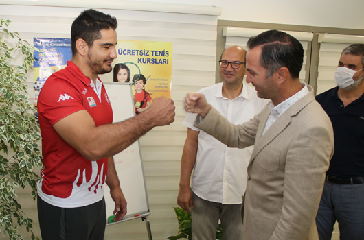 Celal Atik Spor Salonu'nda ve Aşık Veysel Rekreasyon Alanı'nda yer alan Bornova Buz Sporları Salonu'nda çifte ziyaret yapan Taha Akgül, İzmir Büyükşehir Belediyesi Genel Sekreter Yardımcısı Ertuğrul Tugay, İzmir Büyükşehir Belediyesi Gençlik ve Spor Dairesi Başkanı Hakan Orhunbilge, İzmir Büyükşehir Belediyesi Gençlik ve Spor Kulübü Başkanı Ersan Odaman ile görüştü. Maraton İzmir geri sayım sayacı önünde poz veren milli güreşçimiz, 4 Ekim'de düzenlenecek maratona herkesi davet ederken, kendisinin de mümkün olursa mutlaka koşuya katılacağını açıkladı.