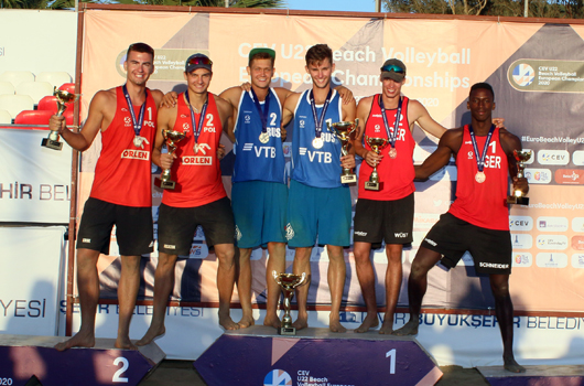 İzmir Büyükşehir Belediyesi ve Türkiye Voleybol Federasyonu’nun ortaklaşa düzenlediği Avrupa Voleybol Konfederasyonu (CEV) U-22 Avrupa Plaj Voleybolu Şampiyonası’nın son gününde şampiyonlar belli oldu.