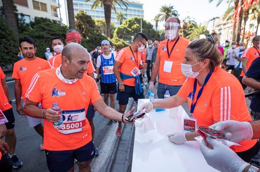 Tüm katılımcılar koronavirüs önlemleri çerçevesinde koşuya üç gün kala kendini izolasyona alacak. Etkinlik alanına tek bir noktadan girişe izin verilecek. İmza için tek kullanımlık kalemler kullanılacak. Yarış alanına giren herkesin ateş ölçümleri yapılacak. Isınmalarda 1,5 metrelik sosyal mesafeye dikkat edilecek. Start dörder kişilik gruplar halinde 5’er saniye arayla verilecek. Her grubun arası 5 metre olacak. Maskeler atık alanlarında toplanacak. Su, temassız onalar dağıtılacak. Tüm parkura ambulanslar yerleştirilecek.