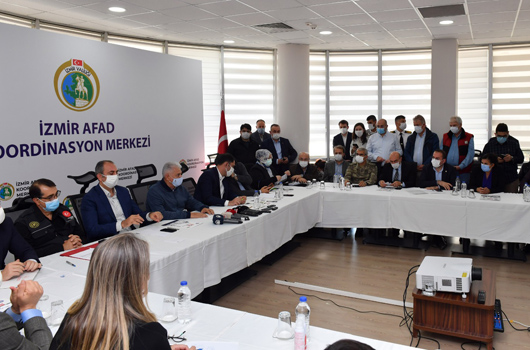 İZMİR'i sarsan Ege depremindeki son durum bugün sabah saatlerinde AFAD İzmir Koordinasyon Merkezi'nde bakanların katıldığı toplantıyla değerlendirildi.