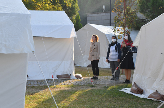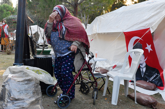 Geçici olarak Aşık Veysel Rekreasyon Alanı’nda barınan depremzedeler Atatürk’ü anmak için çadırlarına Türk bayrağı astı. İzmir İtfaiyesi’nun saat 09.05’te çadır alanında sirenleri çalmasıyla depremzedeler çadırlardan çıkarak Ata’ya saygı duruşunda bulundu. Ardından çadır kentte de İstiklal Marşı söylendi. Belediye Bandosu’nun eşlik ettiği törene İzmir Büyükşehir Belediye Başkanı Tunç Soyer’in eşi Neptün Soyer ve belediye bürokratları da katıldı.