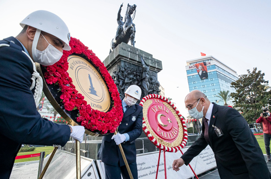 GAZİ Mustafa Kemal Atatürk vefatının 82. yıl dönümünde törenlerle anıldı. İzmir Valiliği tarafından Cumhuriyet Meydanı’nda düzenlenen törene Çevre ve Şehircilik Bakanı Murat Kurum, İzmir Valisi Yavuz Selim Köşger, İzmir Büyükşehir Belediye Başkanı Tunç Soyer, Ege Ordusu ve Garnizon Komutanı Korgeneral Ali Sivri, CHP İzmir milletvekilleri Atila Sertel, Murat Bakan, Tacettin Bayır, Ednan Arslan, AK Parti Genel Başkan Yardımcısı ve İzmir Milletvekili Hamza Dağ, Ak Parti İzmir Milletvekili Mahmut Atilla Kaya, MHP İzmir milletvekilleri Tamer Osmanağaoğlu ve Hasan Kalyoncu, İzmir İl Emniyet Müdürü Hüseyin Aşkın, kentteki üniversitelerin rektörleri ve sivil toplum kuruluşlarının temsilcileri katıldı.