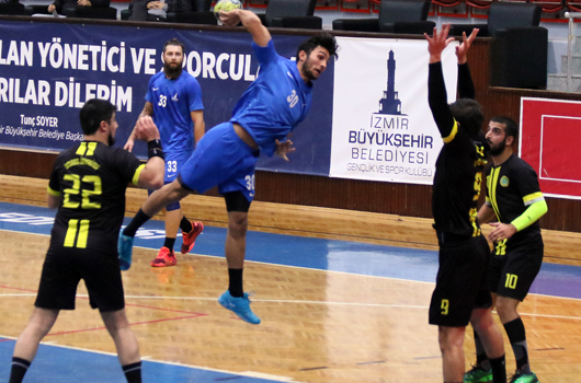 TÜRKİYE Erkekler Hentbol Süper Ligi'nde pandemi nedeniyle son 3 karşılaşması ertelenen İzmir Büyükşehir Belediyespor, İstanbul Üniversitesi Spor Birliği’ni 9 sayı farkla 35-26’lık skorla mağlup etti. Celal Atik Spor Salonu'nda oynanan mücadelede baştan sona üstün oynayan İzmir BBSK, ilk yarı bitiminde soyunma odasına 14-12 galip gitti. İkinci devrede de üstünlüğünü sürdürüp özellikle hızlı hücumlarla goller bulan mavi-beyazlılar, salondan 35-26’lık skorla galip ayrılmayı bildi.