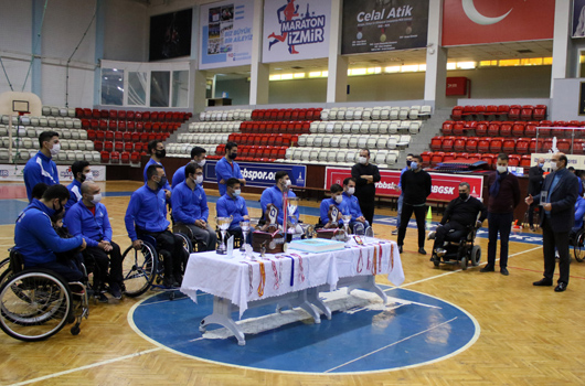 İZMİR Büyükşehir Belediyespor Tekerlekli Sandalye Basketbol Takımı, yönetim kurulumuz ile bir araya gelip yeni yıl kutlaması yaparken başarı sözü alındı. ÜLKEMİZDE tekerlekli sandalye basketbolunun lokomotifi olan İzmir Büyükşehir Belediyespor’da oyuncular ve teknik ekip, yönetim kurulumuz ile bir araya gelerek yeni yıl kutlaması yaptı. Son üç sezonda Avrupa’da ve ülkemizde kazanılan kupaların madalyaların hikayelerinin oyuncular tarafından anlatıldığı yılbaşı kutlamasında Başkanımız Ersan Odaman, yönetim kurulu üyelerimiz Sinan An, Ahmet Uğur Baran, Uğur Yelekli, Genel Koordinatörümüz Mustafa Ağme, Başkan Danışmanımız İsmet Arzuman, Bireysel Sporlar Direktörümüz Kemal Özdönmez, Kurumsal İletişim Uzmanımız Violet Alalof yer aldı. Kulüp yöneticilerimize destekleri için teşekkür plaketleri verildi. Başkanımız Odaman, kulübümüzün misyonu doğrultusunda engelli branşlarına büyük önem verildiğinin altını çizdiği konuşmasında “Bir yandan sizlerin başarıları ile gururlanıyoruz, diğer yandan hem İzmir Büyükşehir Belediyesi hem de kulüp olarak bu desteğin sürekli artırıyoruz. Hedefimiz, pandemi sürecinin sona ermesinin ardından Avrupa’da kupa kazanmak. Hatta bir Avrupa organizasyonunu İzmir’de gerçekleştirmek için başvurumuz olacak. İşte o gün kazanacağımız kupanın fotoğrafını bu duvarlardan birine gururla asacağız” dedi.