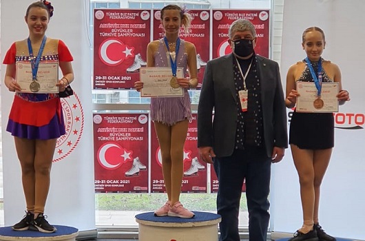 Ankara'daki Artistik Buz Pateni Büyükler Türkiye Şampiyonası'nda 1 altın, 2 gümüş ve 1 bronz madalya kazanıldı.ANKARA'da 29-31 Ocak 2021'de düzenlenen Artistik Buz Pateni Büyükler Türkiye Şampiyonası'nda İzmir Büyükşehir Belediyesporlu sporcular kürsüden inmedi. Dört şehirden 15 kulüpten 63 sporcunun yarıştığı şampiyonada İzmir BBSK'lı Artistik Buz Pateni sporcuları, 1 altın, 2 gümüş ve 1 bronz madalyayı boynuna taktı. Basic Novice Bayanlar kategorisinde Derya Taygan, 48.73 puanla hem altın madalya kazandı, hem de milli takım puanı topladı.