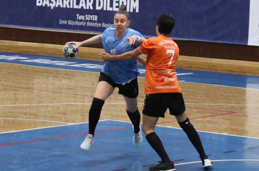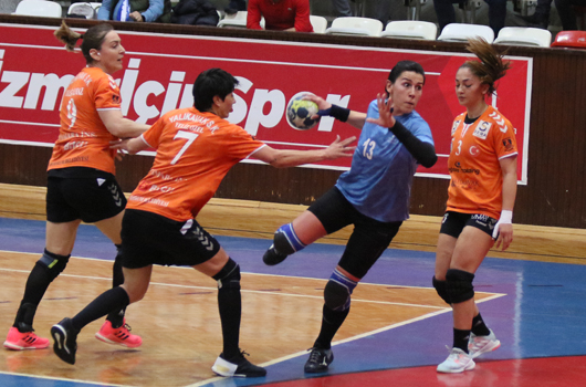 HENTBOL kadın takımımız, İzmir’de ağırladığı lider Yalıkavak’a mağlup oldu. İZMİR Büyükşehir Belediyespor, misafir ettiği Hentbol Kadınlar Süper Lig lideri Yalıkavak’a 24-17 mağlup oldu. Celal Atik Spor Salonu'ndaki zorlu mücadelede İzmir BBSK, çok çekişmeli geçen ilk yarıyı 11-10 geride kapattı.İkinci devresi heyecanlı geçen karşılaşmayı ekibimiz, 24-17 kaybetti.Sibel Kıcıroğlu 4, Yasemin Özgür 4, Ece Sözmen 3, Marija Kaluderovic 3, Gülsüm Bedel 2, Burcu Dindar 1'er sayı kaydetti.Ekibimiz, 13 Mart’ta deplasmanda Elazığ Sosyal Yardımlaşma Spor Kulübü ile karşı karşıya gelecek.