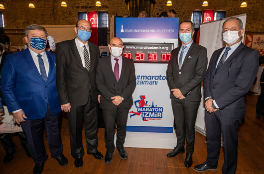 Maratonİzmir’in tanıtım toplantısı, İzmir Büyükşehir Belediye Başkanı Tunç Soyer, İzmir Büyükşehir Belediye Başkan Vekili Mustafa Özuslu, İzmir Gençlik ve Spor İl Müdürü Murat Eskici ve Atletizm Federasyonu Asbaşkanı Ali Aksu, Adidas Pazarlama Direktörü Onur Demircan, Pürsu Genel Müdürü Hakan Çelik, İzmir Büyükşehir Belediyesi Genel Sekreteri Dr. Buğra Gökçe, Genel Sekreter Yardımcısı Ertuğrul Tugay, İzmir Büyükşehir Belediyesi Gençlik ve Spor Dairesi Başkanı Hakan Orhunbilge, İzmir Büyükşehir Belediyesi Gençlik ve Spor Kulübü Başkanı Ersan Odaman, Karşıyaka Başkanı Turgay Büyükkarcı, Altınordu Başkan Vekili Barış Orhunbilge, İzmir Spor Kulüpleri Birliği Vakfı (İZVAK) Başkanı Ali Erten ve Foça Belediye Başkanı Fatih Gürbüz, katılımıyla Tarihi Havagazı Fabrikası’nda düzenlendi.