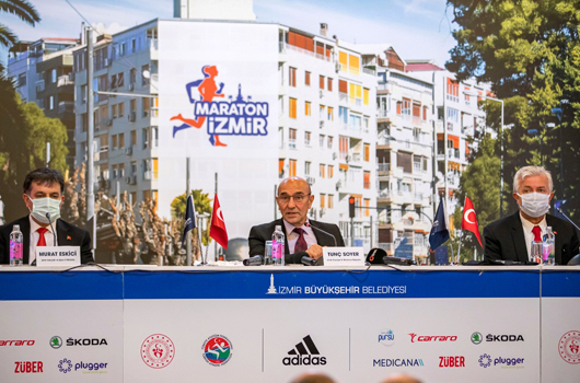 Basın toplantısında konuşan İzmir Büyükşehir Belediye Başkanı Tunç Soyer, sporun birleştirici gücüne inanarak İzmir genelinde herkesin spora erişimini kolaylaştırmak için birçok adım attıklarını söyledi. İzmir’i dünyayla buluşturmak ve sporu il genelinde teşvik etmek için uluslararası spor organizasyonlarına özel önem verdiklerini belirten Tunç Soyer, 9 Eylül Yarı Maratonu ve 19 Mayıs Koşularını, Maraton İzmir ile taçlandırmaya devam ettiklerini dile getirdi. Geçen yıldan bu yana devam eden küresel pandeminin, spor alanında da büyük tahribat yarattığına dikkat çeken İzmir Büyükşehir Belediye Başkanı Tunç Soyer, yine pandemi sebebiyle fiziksel koşuya katılamayan sporcular için düzenlenen Türkiye’nin ilk sanal koşu platformu “BizKoşarız”ı bu yıl da hayata geçireceklerini müjdeledi. Başkan Soyer, “Böylece dünyanın neresinde olursa olsun sporcuların Maraton İzmir coşkusunu yaşayabilmesine, koştuğu her kilometre için puan toplayıp ödül kazanmasına imkân sağlıyoruz” diye konuştu.