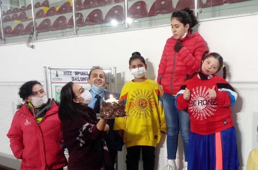 İzmir Büyükşehir Belediyespor Buz Sporları Şube Müdürü Hüseyin Özgül ile antrenörümüz Neşe Olcay Hünerli, sporcularımıza pasta buz üzerinde keyifli dakikalar geçirdi.