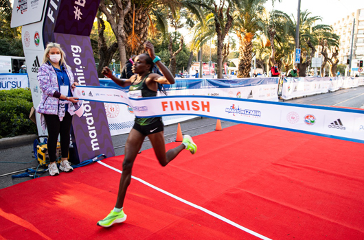 Uluslararası Maratonİzmir, 11 Nisan Pazar günü 42 ve 10 kilometre kategorilerinde pandemi tedbirleri kapsamında koşuldu. Tam zamanında başlayan, tüm derecelerin çiplerle takip edildiği yarışta sporcular için üst düzey pandemi önlemleri alındı, yol boyunca sağlık ekipleri görev yaptı, bisikletli doktor ve bisikletli su dağıtıcıları güzergah boyunca çalıştı. Dereceye girenlere ödülleri, temassız ortamda verildi, geri dönüşümlü malzemeden özel olarak imal edilen kupalar, yarışın “Sürdürülebilir bir dünya için koşuyoruz” temasına birebir uyum sağladı.