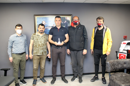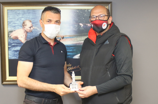 Kulüp Başkanımız Ersan Odaman, Yönetim Kurulu Üyemiz Uğur Yelekli ve Kulüp Genel Sekreterimiz Barış Şeref, Tarsus Belediyespor yöneticileri Serkan Kuruloğlu ile Günay Yüksel’i başkanlık makamında misafir etti. Odaman, günün anısına Yüksel’e minatür İzmir Saat Kulesi heykeli hediye etti.