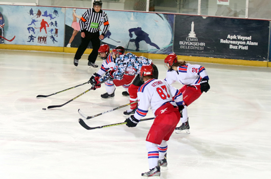 İZMİR Büyükşehir Belediyespor, Buz Hokeyi 1. Ligi Play-Off finalinde Çayyolu Gordion'u 13-0 yenerek bir sezon arada sonra Süper Lig'e yeniden "merhaba" dedi.