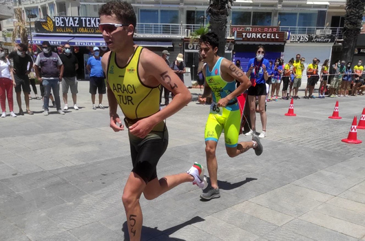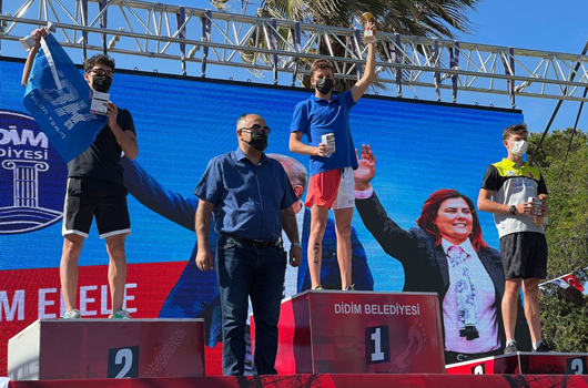 SPORCULARIMIZ, Didim Triatlonu’nda bir altın, bir gümüş ve bir bronz madalya kazandı.İZMİR Büyükşehir Belediyespor Triatlon takımı, Didim’den üç madalya getirdi. Bugün koşulan Didim Triatlonu’nda 30 kulüpten 510’a yakın sporcu mücadele ederken, kulübümüzden 14 sporcu elit erkek, genç erkek, yıldız erkek ve yıldız kız kategorilerinde yarıştı. Organizasyonda genç erkeklerde Emir Aracı rakiplerini geride bırakarak altın madalya kazandı. Yıldız erkeklerde Arda Aracı ikinci olurken, yıldız kadınlarda da Irmak Şereflioğlu üçüncü sırada yer aldı.