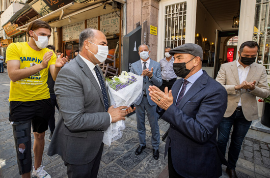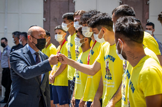 ULUSLARARASI turnuvalar ile İzmir'e bir spor kenti vizyonu kazandıran, göreve geldiği ilk günden itibaren amatör ve profesyonel kulüplere çok önemli maddi destekler sağlayan, sportif kimliğiyle topluma her zaman örnek olan İzmir Büyükşehir Belediye Başkanı Tunç Soyer, 3. Lig play-off finalini kazanarak 2. Lig'e çıkan Bucaspor 1928 takımını ağırladı.Teşekkür ziyaretinde İzmir Büyükşehir Belediyesi Genel Sekreter Yardımcısı Ertuğrul Tugay, İzmir Büyükşehir Belediyesi Gençlik ve Spor Hizmetleri Dairesi Başkanı Hakan Orhunbilge, Bucaspor 1928 Asbaşkanı Mehmet Sevinç, Bucaspor 1928 Teknik Direktörü Uğur Balcıoğlu, teknik ekip ve futbolcular da yer aldı. Başkan Soyer, futbolcuları tek tek tebrik ederken, takım kaptanı Gökhan Köseoğlu'na çiçek takdim etti.