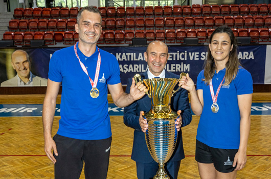 Başkan Soyer, İzmir’de sporun her branşında başarı rüzgarı estiğine dikkat çekerek, “Süper Lig’de Göztepe’nin yanında artık Atay da var. Altınordu, genç ve yerli kadrosuyla play-off finaline kadar geldi. Bucaspor, TFF 2. Ligi’ne yükseldi. Pınar Karşıyaka FIBA Şampiyonlar Ligi’nde finale çıkıp kentimizi temsil etti. Son olarak İzmir Büyükşehir Belediyespor Hentbol Erkek Takımımız, İzmir’e tarihindeki ilk Türkiye Kupası’nı kazandırırken, kızlarımız da final oynadı” vurgusu yaptı.