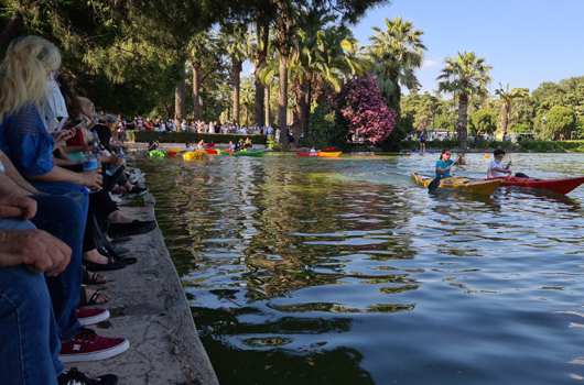 DÜNYA Çevre Günü, sporcularımızın da katıldığı bir etkinlikle kutlandı.İZMİR Büyükşehir Belediyesi 5 Haziran Dünya Çevre Günü’nü Kültürpark’ta kutladı. Müzik, halk oyunları ve danslarla eğlenen gönüllüler “temiz bir çevre” çağrısıyla farkındalık yaratmak adına çöp de topladı.İzmir Büyükşehir Belediyesi Spor Kulübü Kano takımı daha sonra gölün içindeki parkurda bayrak yarışı yaptı. Etkinliğe katılanlara “Dünya Çevre Günü” baskılı maske, evlerindeki musluklara takabilecekleri "Su Hayattır, Geleceğini Kurtar. Musluğu kapa" yazılı tutacak hediye edildi.