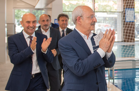 İZMİR Büyükşehir Belediyesi’nin toplam değeri 1 milyar lirayı aşan 4 yatırımının açılış töreni için kente gelen CHP Genel Başkanı Kılıçdaroğlu’nun ikinci durağı Bornova’daki Havuz İzmir oldu. Aşık Veysel Rekreasyon Alanı içerisinde 16 milyon lira maliyetle inşa edilen tesisin açılış töreninde İzmir Büyükşehir Belediye Başkanı Tunç Soyer, “Su sporlarını teşvik etmek ve spor takımlarını desteklemek için İzmir’e kazandırdığımız Havuz İzmir, aslında pandeminin yaşamımızda ne tür olumsuzluklar yarattığını da hatırlattı. 2020 yılında planladığımız takvim dâhilinde yapımını tamamladığımız halde kısıtlamalar nedeniyle hizmete açamamıştık. İlk kez bugün hizmete sunuyoruz. Pandemi süreci belki yatırımlarımızı durduramadı ama bugünkü gibi kıymetli buluşmaları geciktirdi” dedi.