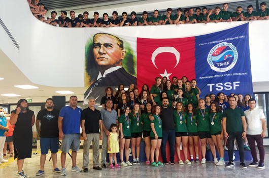 SUALTI Ragbisi U24 Federasyon Kupası’nda üçüncü olduk. İZMİR Büyükşehir Belediyesi Kadın Sualtı Ragbisi Takımı, U24 Federasyon Kupası’nı üçüncü sırada tamamladı. Havuz İzmir’de düzenlenen turnuvayı iki galibiyet, iki yenilgi ile bitiren ekibimiz, son maçında Marmara’yı 8-0 mağlup etti. Organizasyonda kürsüye çıkan sporcularımıza madalyalarını İzmir Büyükşehir Belediyesi Gençlik ve Spor Kulübü Yönetim Kurulu Su Sporlarından Sorumlu Üyesi Hüseyin Egeli, Kulüp Genel Sekreterimiz Barış Şeref ve Su Sporları Direktörümüz Soykan Üstünkar verdi.