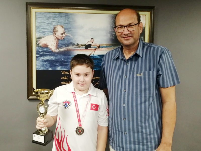 SPORCUMUZ Ata Kolat, İzmir Satranç Birinciliği Küçükler Şampiyonası'nda 11 Yaş genel klasmanda ikinci oldu. Başkanımız Ersan Odaman, başarılı satrançıyı özel olarak tebrik etti. Odaman; “Sporun her branşında olduğu gibi satrançta da iddialı ve yetiştirici olmaya devam ediyoruz. Ata Kolat gibi gelecek vaad eden sporcularımızın varlığı bizi umutlandırıyor” dedi. Ata Kolat, 27 Ağustos-3 Eylül tarihleri arasında Konya'da düzenlenecek Türkiye Küçükler Satranç Şampiyonası'nda da yarışacak.