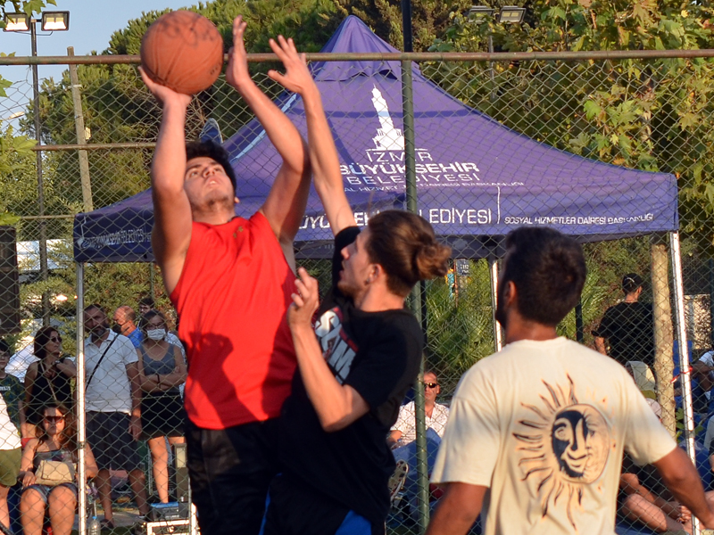 İZMİR Büyükşehir Belediye Başkanı Tunç Soyer’in sporu kentin her noktasına yayma vizyonuyla yola çıkan İzmir Büyükşehir Belediyesi, Urla’da 3x3 Sokak Basketbolu Urla Kupası organize etti. Heyecan ve coşkunun bir an bile azalmadığı turnuvada son gün oynanan final maçları nefesleri kesti. Tanju Okan Parkında düzenlenen ve gün boyu süren basketbol festivalinde, sporcular kadar organizasyonun içinde bulunan veliler de keyif aldı. Üç farklı yaş grubundan toplam 44 takımın katıldığı turnuvada, smaç ve 3 sayı yarışması ile Yarımada Gençlik Spor Kulübü Kız Basketbol Takımı’nın gösterisi de büyük beğeni topladı.
