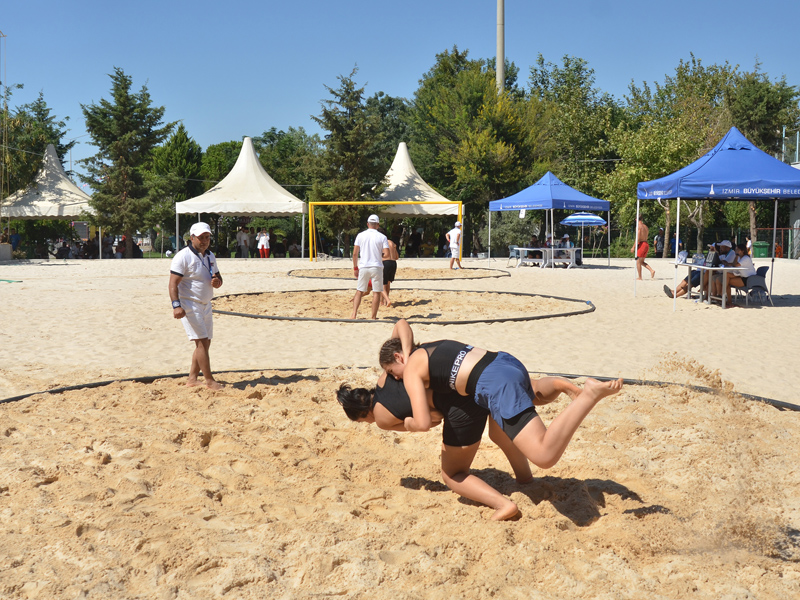 Gençler ve Yıldızlar Türkiye Plaj Güreşi Şampiyonası, birbirinden çekişmeli müsabakalara sahne oldu. İzmir Büyükşehir Belediyesi ile Türkiye Güreş Federasyonu'nun ortaklaşa organize ettiği turnuvaya 30 ilden 230 sporcu katıldı. İlk üç sırayı alan güreşçiler Milli Takım kampına katılmaya hak kazandı.
