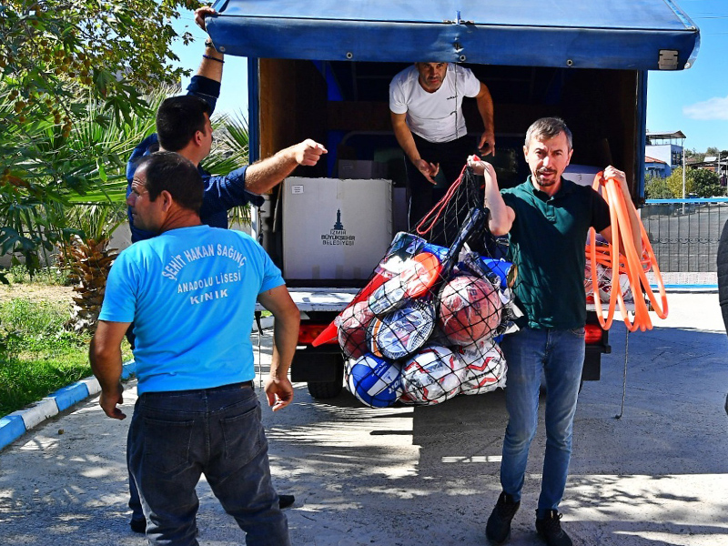 İZMİR Büyükşehir Belediye Başkanı Tunç Soyer’in “eğitimde fırsat eşitliği” ilkesi ve “sporu tüm kente ve her kesime yayma” hedefi doğrultusunda okullara spor malzemesi dağıtımı başladı. Bergama'da 75, Kınık'ta ise 28 okula içinde “basketbol, futbol, voleybol, hentbol, futbol topları ile fileleri, badminton raketi, topu, filesi, dart, sağlık topu ve trambolin” gibi malzemelerin bulunduğu setler teslim edildi. Büyükşehir Belediyesi, İzmir'de 30 ilçede toplam bin 500 okula spor malzemesi ulaştıracak. Ekipler çevre ilçelerdeki köylere kadar tek tek giderek malzemeleri ulaştırıyor. Merkez ilçelerde ise okul yöneticileri kolileri İzmir Büyükşehir Belediyesi’nden teslim alıyor.