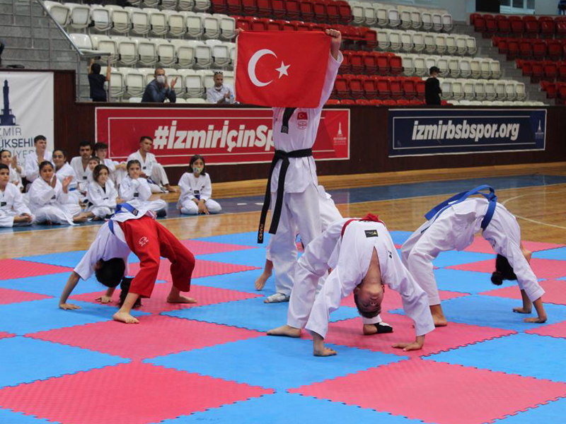İZMİR Büyükşehir Belediyesi Gençlik ve Spor Kulübü Tekvando Şubesi’nde, 3. dönem kuşak sınavı yapıldı. 180 sporcunun katıldığı sınavda sporcularımızın performansı oldukça beğeni topladı. Elit sporcularımızın gösterisi de sınava giren sporcularımız tarafından ilgiyle izlendi. Büyükler, Gençler ve Yıldızlar Avrupa Şampiyonası ile Gençlik Olimpiyatı Avrupa Kıta Elemesi’ne direkt katılma hakkı kazanan sporcularımıza da çiçek verilerek başarıları alkışlandı.