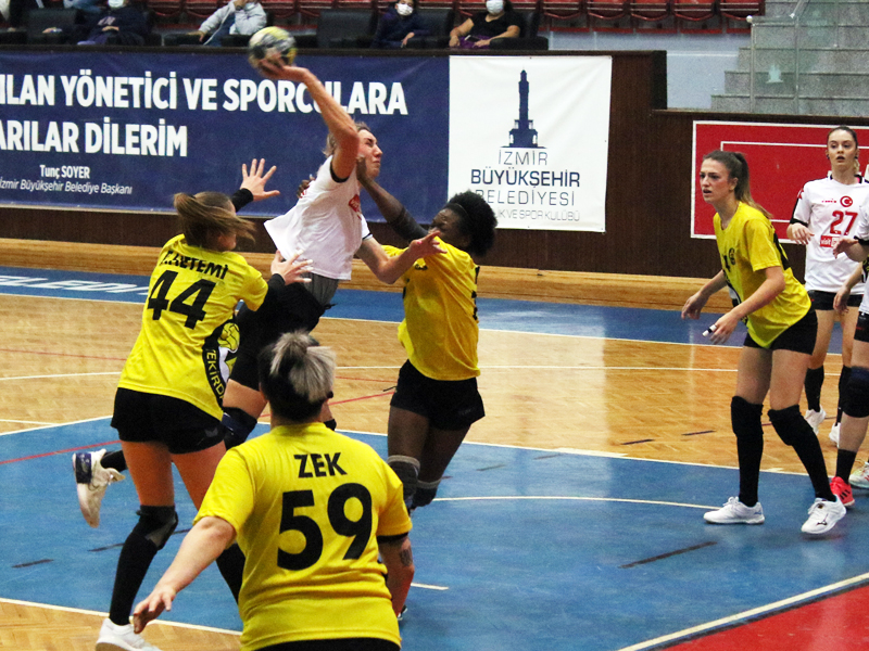 HENTBOL Kadınlar Süper Ligi'nde mücadele eden İzmir Büyükşehir Belediyesi Gençlik ve Spor Kulübü, 6. hafta karşılaşmasında İzmir’de Tekirdağspor’u 36-20’lik skorla yendi ve bu sonuçla ligde üst üste 5. galibiyetini almış oldu.