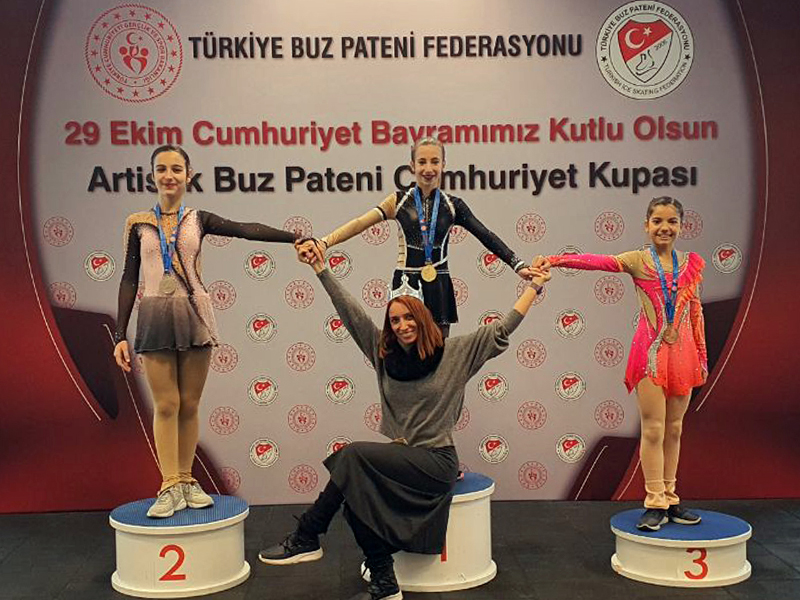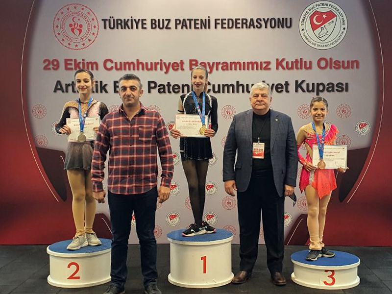 İZMİR Büyükşehir Belediyesi Gençlik ve Spor Kulübü Artistik Buz Pateni sporcularımız, Ankara'daki Cumhuriyet Kupası'ndan başarıyla döndü. Ümitköy Spor Tesisleri'nde 29-31 Ekim tarihleri arasında düzenlenen organizasyonda piste çıkan sporcularımız, iki birincilik, bir ikincilik ve bir üçüncülük elde ederken, iki kupa ve üç de milli takım puanı kazandı.
