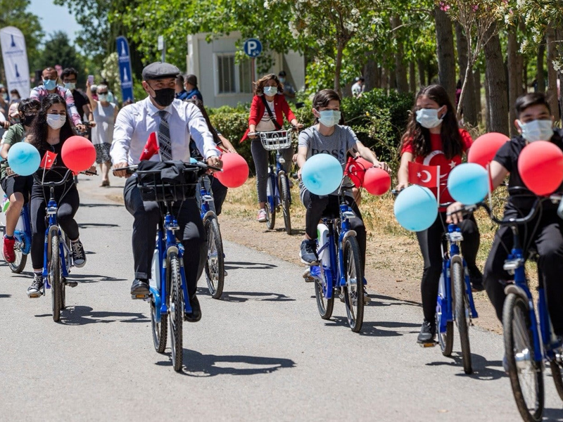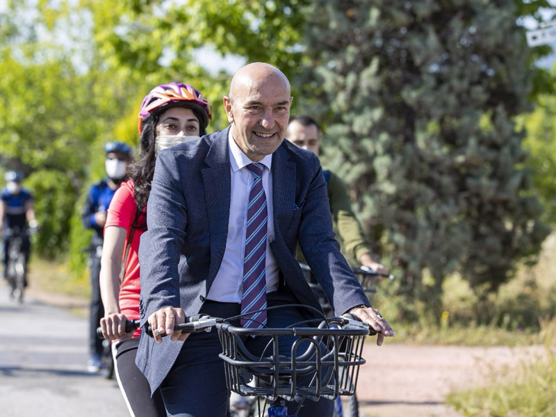 İzmir Büyükşehir Belediye Başkanı Tunç Soyer’in doğayla uyumlu, dirençli, refahı yüksek, biyolojik çeşitliliğini koruyan bir şehir ve bir dünya inşa etme vizyonu doğrultusunda “Şehirler Sıfıra Yarışıyor” (Cities Race to Zero) programına katılan İzmir Büyükşehir Belediyesi, 2050’ye kadar net sıfır karbon salımını amaçlıyor. Bu doğrultuda yerel yönetimlere örnek pek çok uygulamanın hayata geçirildiği kentte bisikletli ulaşım teşvik ediliyor. Bisiklet kullanan yurttaşlar deniz ulaşımından 5 kuruşa yararlanıyor, bisiklet yolları genişliyor, kiralık bisiklet sistemi BİSİM’in istasyon sayısı her geçen gün artıyor. Tandem bisikletler ve çocuk bisikletleri sisteme dahil ediliyor, bisikletliler için ücretsiz tamir istasyonları kuruluyor, bisikletin toplu ulaşıma entegrasyonu sağlanıyor.