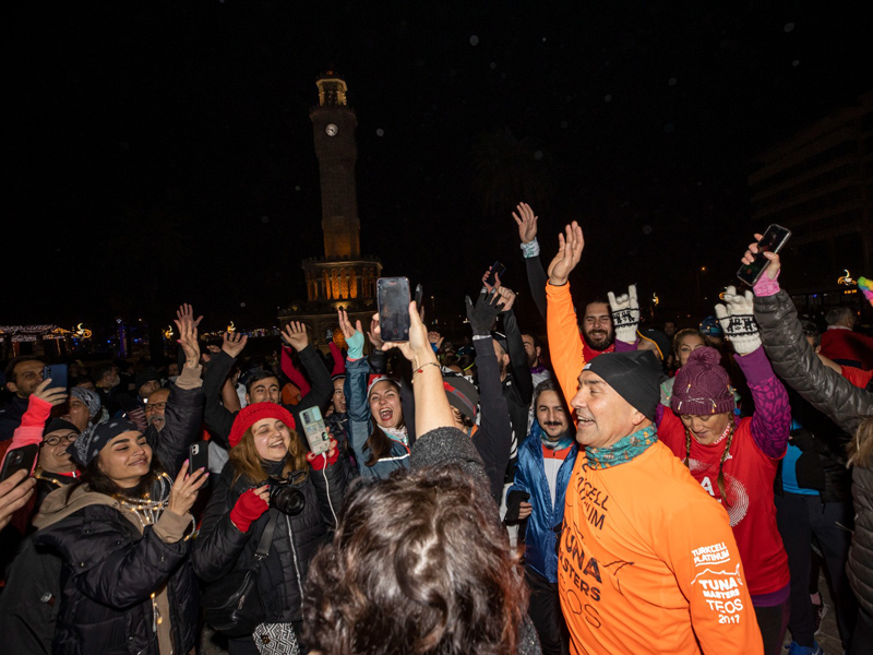 İZMİR Büyükşehir Belediyesi, Büyükşehir Belediye Başkanı Tunç Soyer’in İzmir’i spor kenti haline getirme vizyonu doğrultusunda yılın en uzun gecesi 21 Aralık’ı sporla taçlandırdı. Konak Vapur İskelesi ile Üçkuyular İzmir Marina arasında düzenlenen etkinliğe bine yakın koşucu ve 150'den fazla bisikletli katıldı. Başkan Soyer ve eşi Neptün Soyer koşu öncesi Saat Kulesi önünde toplanan katılımcılar ile birlikte müzik eşliğinde ısınma hareketleri yaptı.