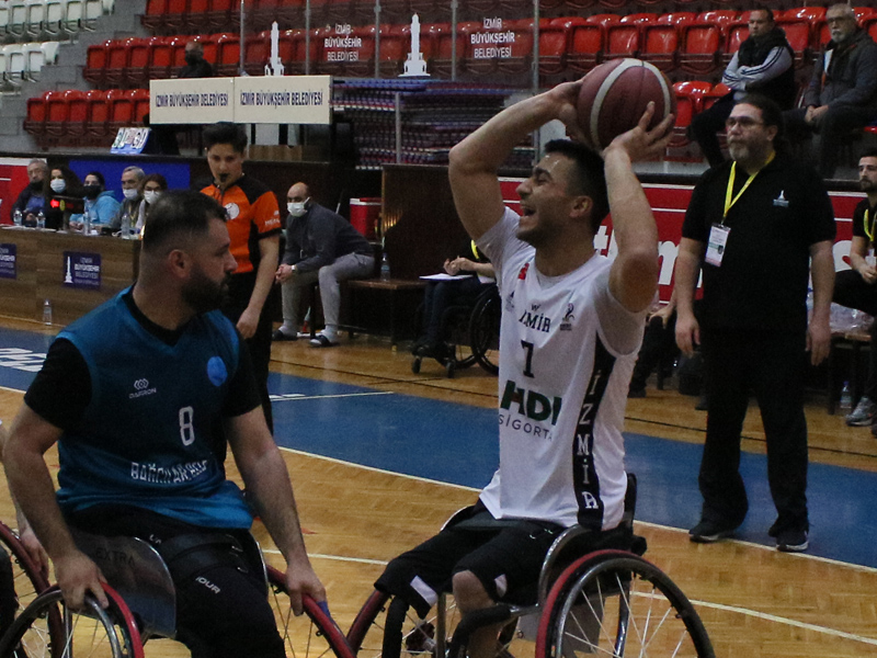 TEKERLEKLİ Sandalye Basketbol Süper Ligi’nde beşte beş yapan son şampiyon İzmir Büyükşehir Belediyesi Gençlik ve Spor Kulübü, altıncı hafta maçında İzmir'de Bağcılar Engelliler SK'yı 84-49 skorla mağlup etti.