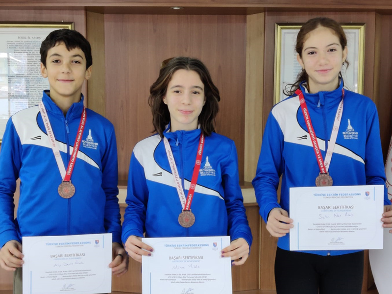 İZMİR Büyükşehir Belediyesi Gençlik ve Spor Kulübü eskrimcileri, 25-26 Aralık 2021 tarihlerinde Karabük'te düzenlenen U14 Erkek Kılıç Turnuvası'nda üç bronz madalya kazandı. 74 sporcu arasında erkeklerde Alp Deniz Öcek, kızlarda ise yine 74 sporcu arasında Mina Yıldız ve Selin Naz Öcek üçüncü oldu. Elif Damla Gülebastı da turnuvayı 12. olarak tamamladı.