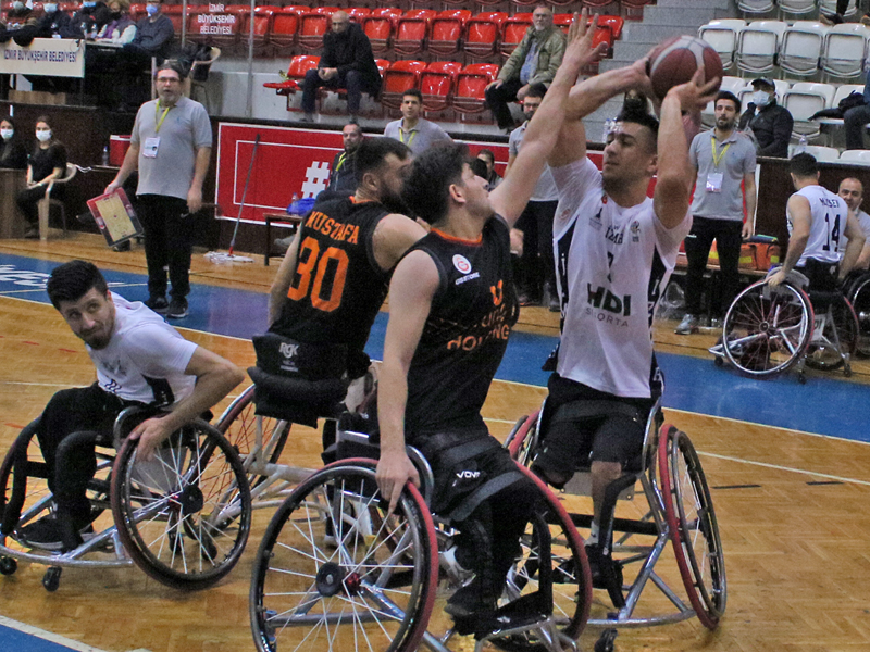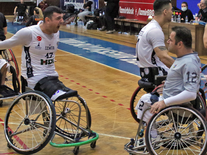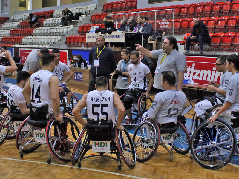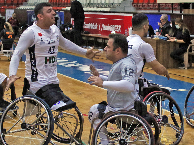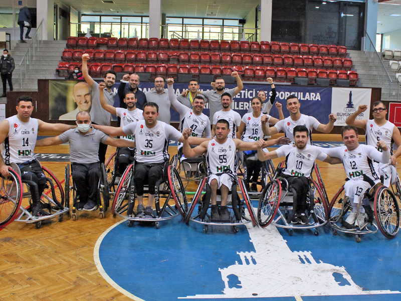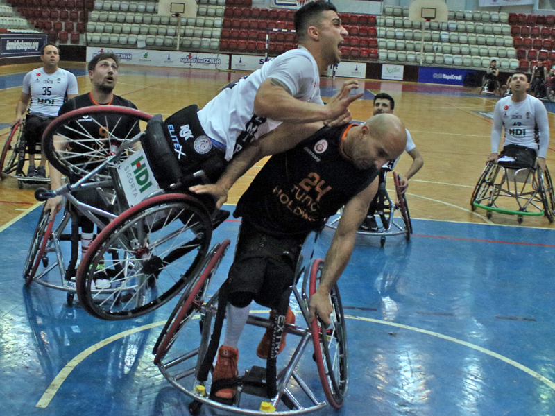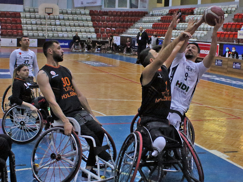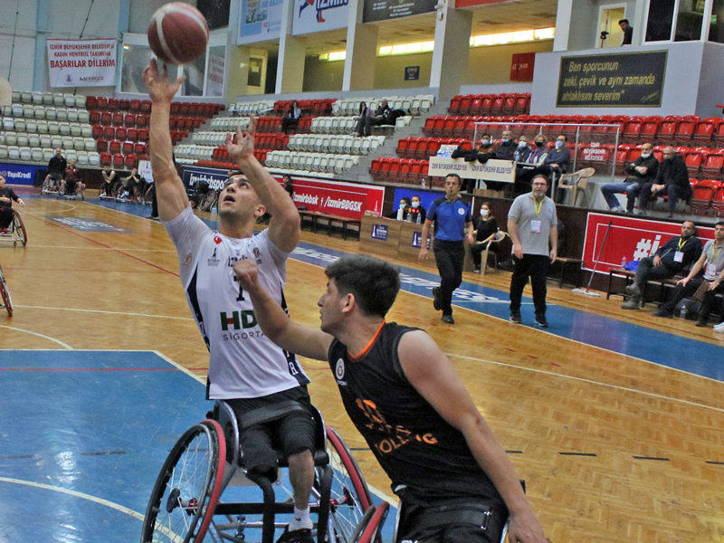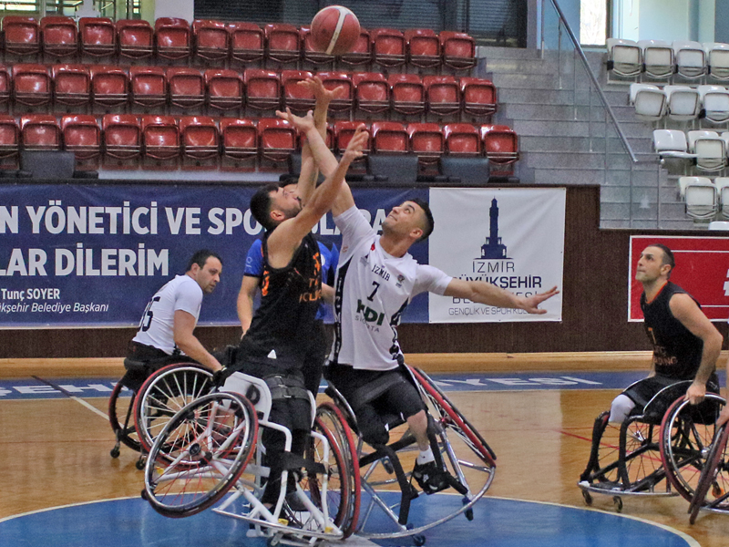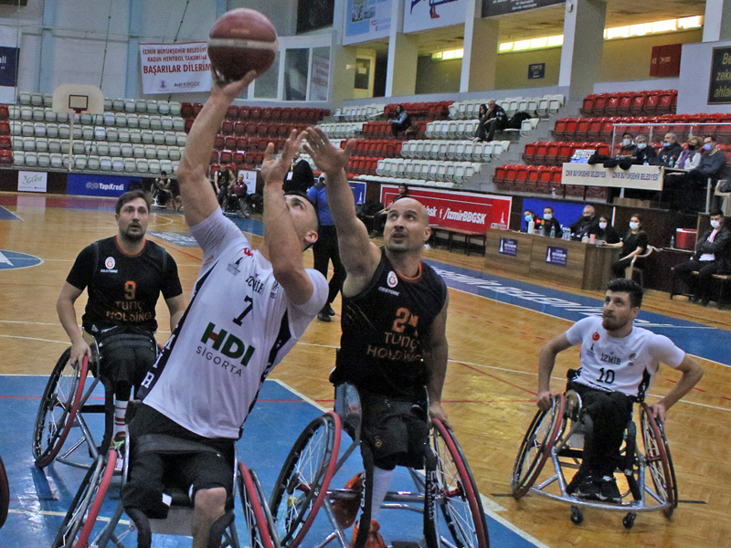 TEKERLEKLİ Sandalye Basketbol Süper Ligi’nin son şampiyonu İzmir Büyükşehir Belediyesi Gençlik ve Spor Kulübü, 11. haftada misafir ettiği Galatasaray karşısında ilk 3 periyodu yenik bitirmesine rağmen karşılaşmayı 65-63 galibiyetle noktaladı.