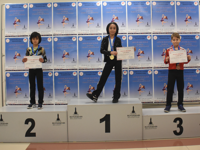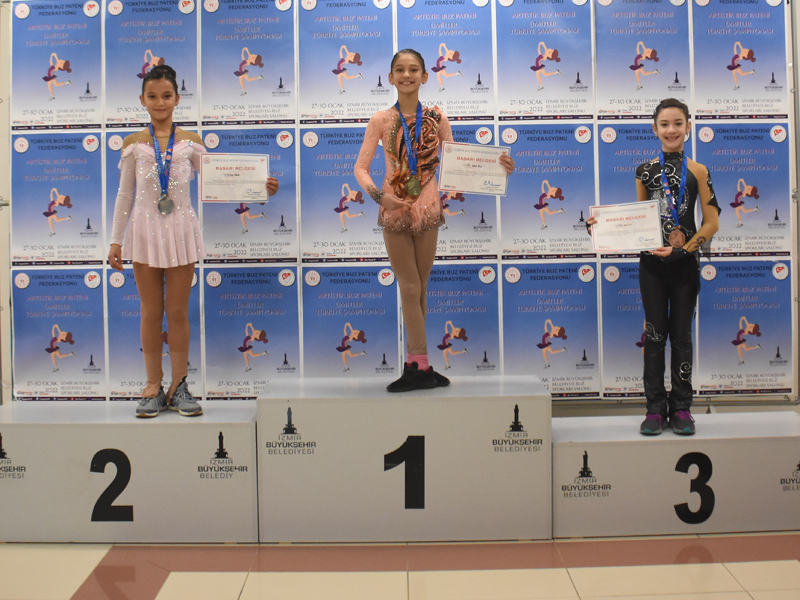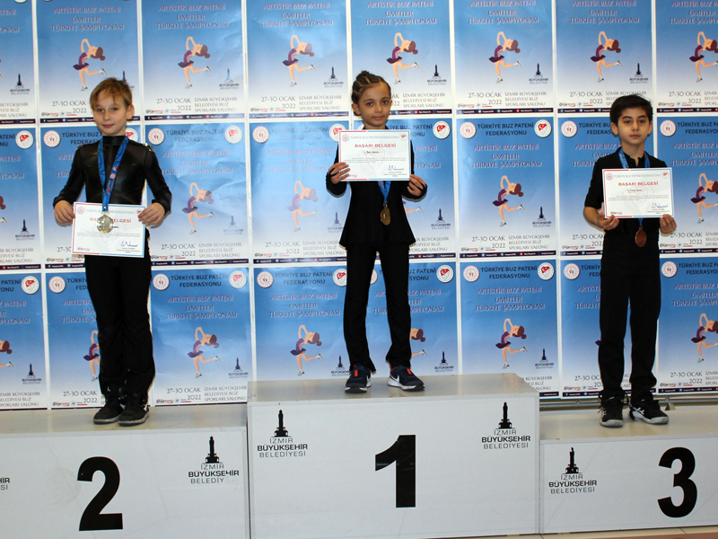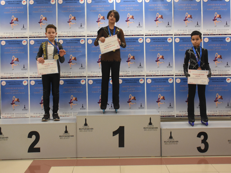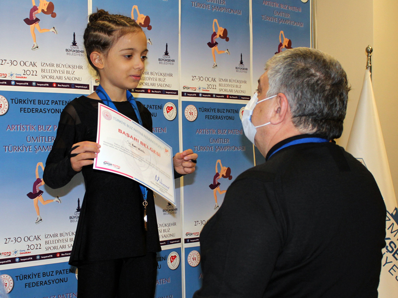 İZMİR Büyükşehir Belediyesi Gençlik ve Spor Kulübü Buz Pateni sporcuları, Ümitler Türkiye Şampiyonası’nda 4 altın, 3 gümüş ve 2 bronz madalya olmak üzere toplam 9 madalya kazandı. İzmir’de düzenlenen organizasyona 6 şehirden gelen 25 kulüpten toplam 150 sporcu buz pistinde madalya kazanmak için ter döktü.