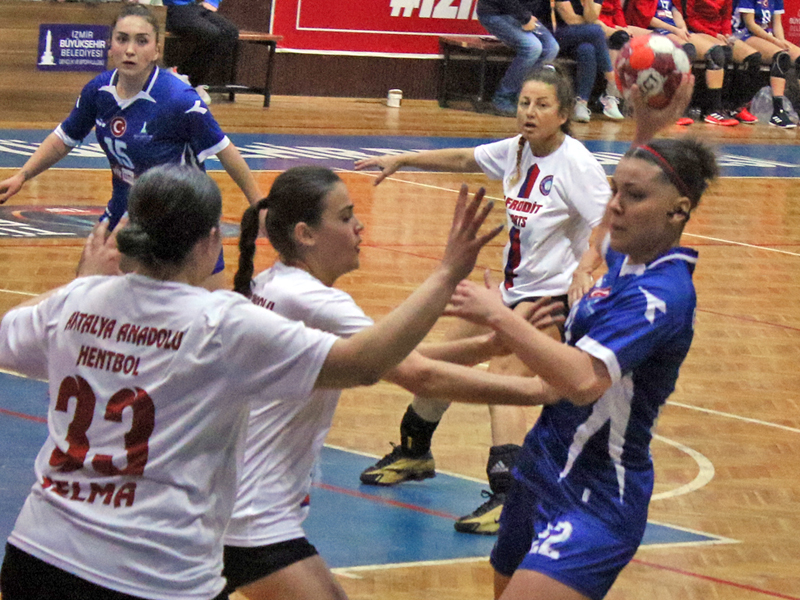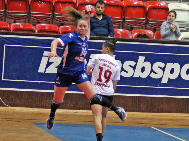 HENTBOL Kadınlar Süper Ligi'nde zirve yarışı yapan İzmir Büyükşehir Belediyesi Gençlik ve Spor Kulübü, misafir ettiği Antalya Anadolu’yu 45-27’lik skorla mağlup etti.