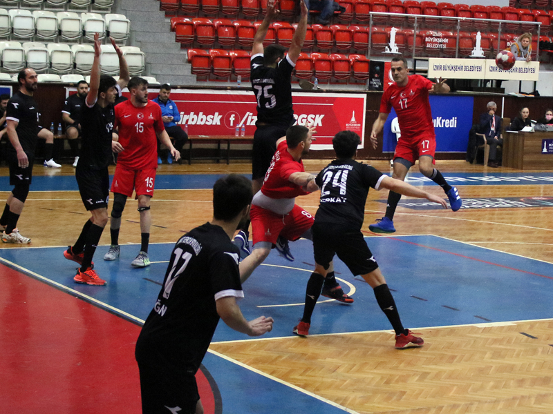 Celal Atik Spor Salonu'ndaki karşılaşmada ekibimiz, ilk yarıyı 17-9 skorla önde kapattı. İkinci devrede üstünlüğünü sürdüren takımımız. karşılaşmayı 38-25’lik skorla kazandı. Karşılaşmada Bayram Kasırga 12, Mert Gelgeç 5, Eyüp Orkun Söz ve Gökhan Örnek 4’er, Erdoğan Sürer 3, Egehan Gül, Tolga Özbahar ve Burak Can Öztürk 2’şer, Nevzat Kerem Direk, Refik Tuğyan, Yiğit Erden ve Ata Yetkinoğlu 1’er gol ile skora katkı sağladı.