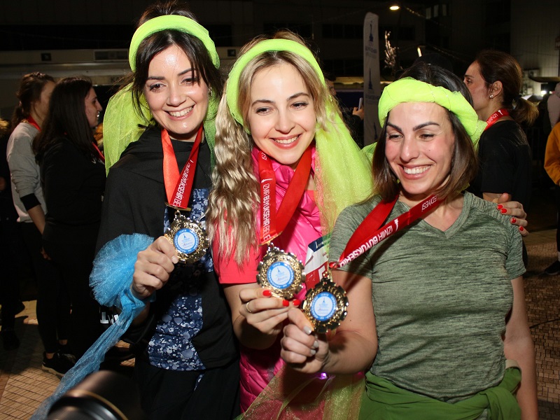 Her sokakta ayrı bir tarihe tanıklık eden koşucular, tarihi çarşıyı ışıklı kostümleri, ıslıklar, düdük sesleri, slogan ve şarkılarla renklendirdi. Bitiş çizgisinde koşuya katılan herkese günün anısına üzerinde “8 Mart Kadınlar Günü Koşusu” yazılı madalyalar hediye edildi. Koşunun ardından Turuncu Bahçe’de canlı müzik eşliğinde hep bir ağızdan şarkılar söylendi.