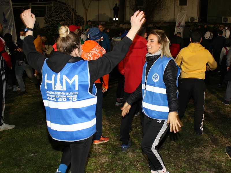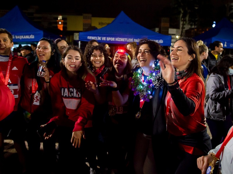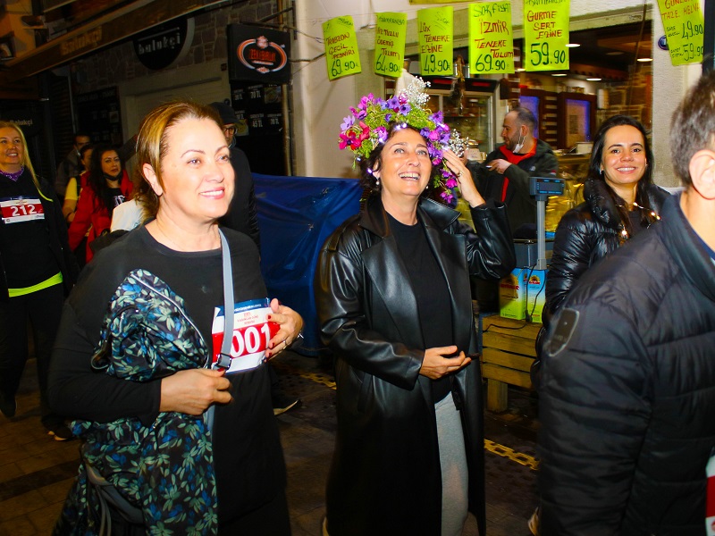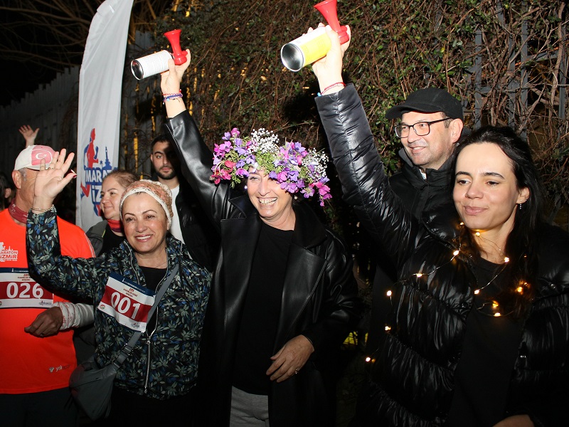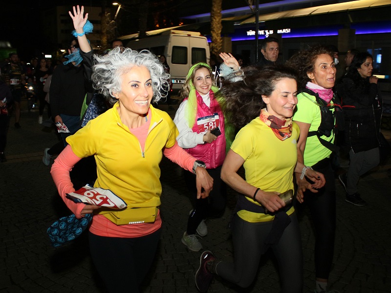 8 Mart koşusuna toplumsal cinsiyet eşitliğine dikkat çekmek isteyen kadın erkek 7’den 70’e İzmirli büyük ilgi gösterdi. Saat 20.00’de Neptün Soyer, Öznur Tugay ve Nilay Kökkılınç kornalarla koşuyu başlatarak maratona katıldı. Katılımcılar, Havra Sokağı üzerinden Tarihi Kemeraltı Çarşısı’ndaki parkuru takip ederek Konak’taki Turuncu Bahçe’ye kadar dört kilometrelik parkuru tamamladı.