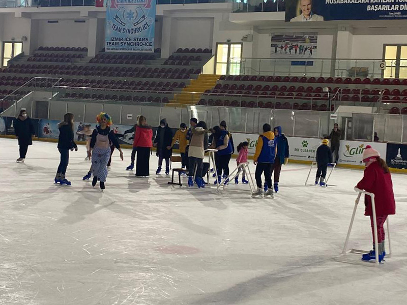 Bornova Aşık Veysel Rekreasyon Alanı Buz Sporları Salonu’ndaki organizasyona İzmir Büyükşehir Belediyesi Engelliler Şube Müdürlüğü, Konak Moris Bencuya Özel Eğitim, Değirmenci Özel Eğitim, Bornova İsmet Sezgin Ortaokulu, Bornova Gençlik Merkezi ile Vizyon Otizm Kulübü katıldı. Yaklaşık 60 kişinin yer aldığı organizasyonda down sendromlu sporcular, buz pistinde becerilerini gösterdi. Organizasyonun bitiminde İzmir Büyükşehir Belediyesi Başkanı Tunç Soyer’in imzaladığı katılım belgeleri de kokteyl eşliğinde Buz Sporları Şube Müdürü Hüseyin Özgül tarafından katılımcılara takdim edildi.