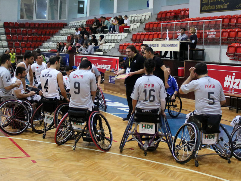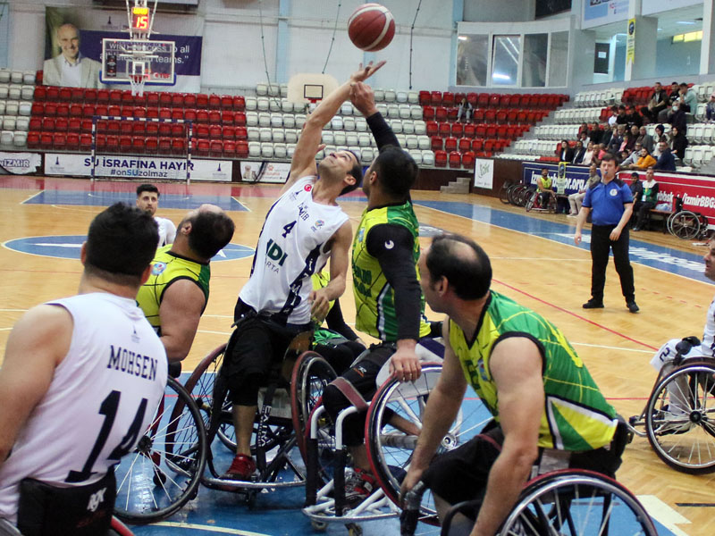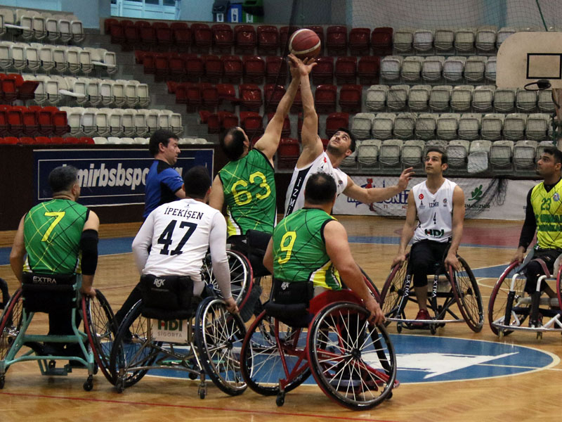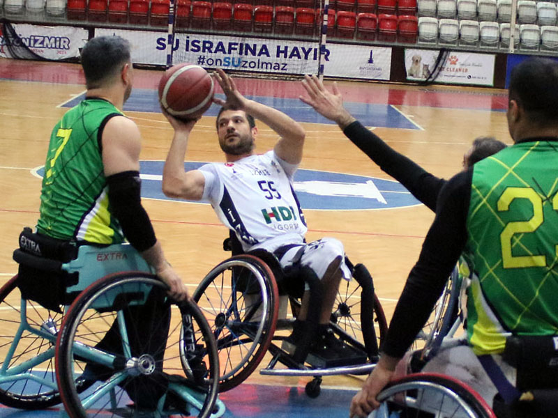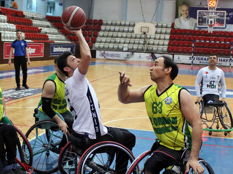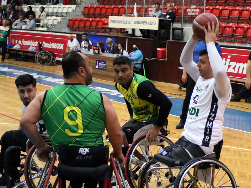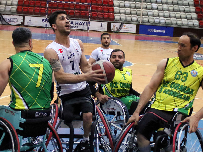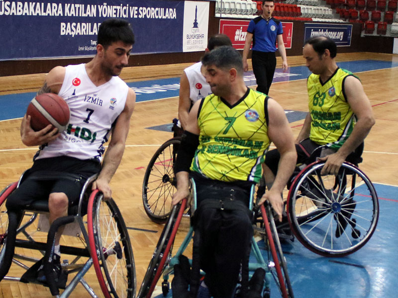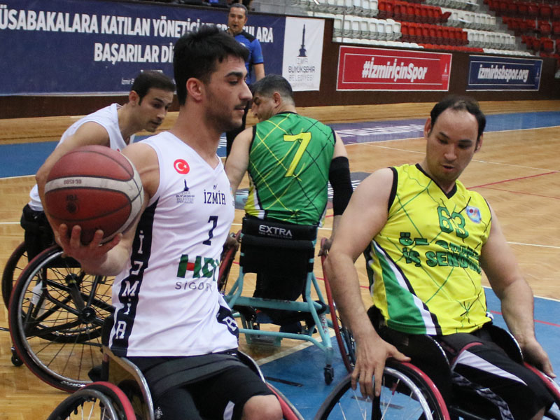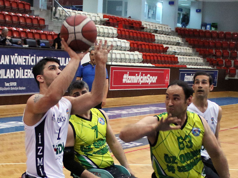 TEKERLEKLİ Sandalye Basketbol Süper Lig’de şampiyonluk mücadelesi yapan son lig şampiyonu İzmir Büyükşehir Belediyesi Gençlik ve Spor Kulübü, İzmir’de ağırladığı Ceylanpınar Bedensel Engelliler Spor Kulübü’nü 70-57’lik skorla yendi.