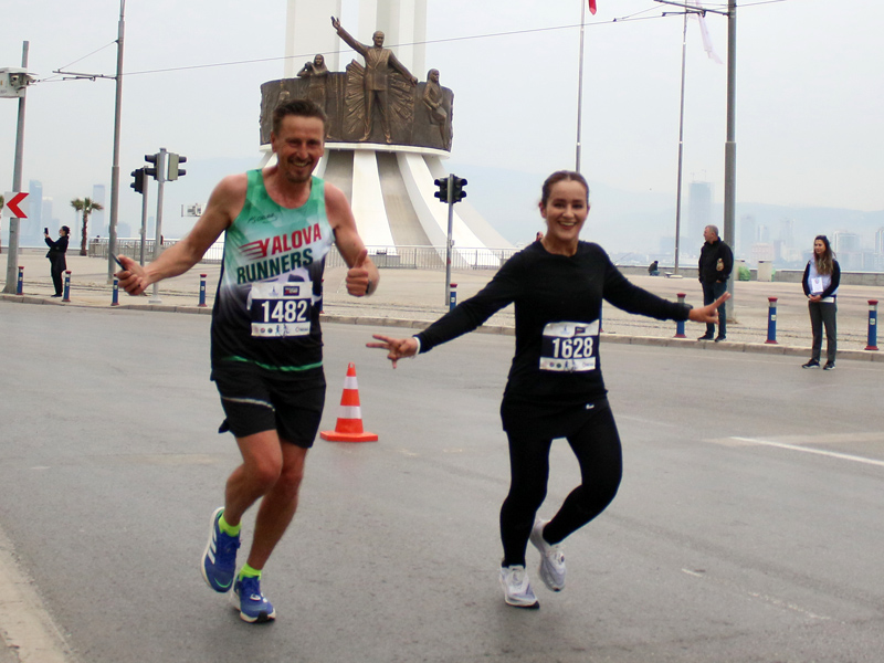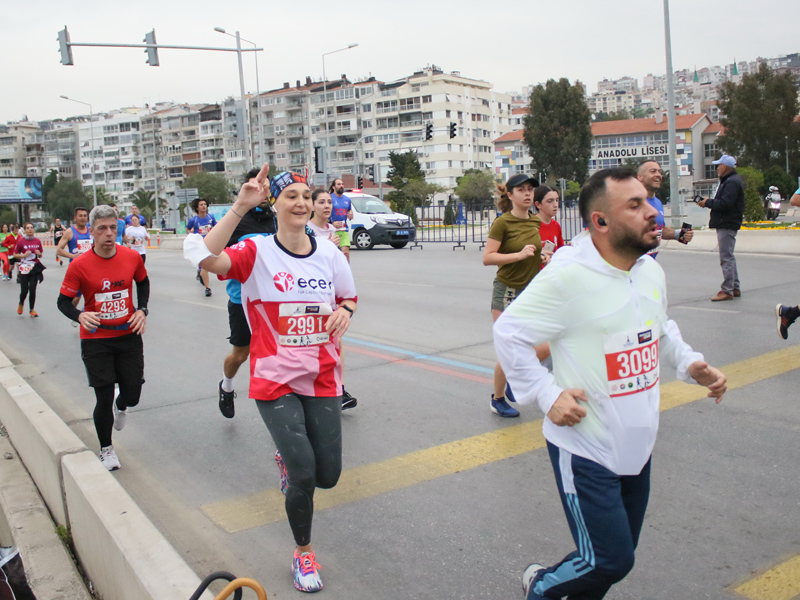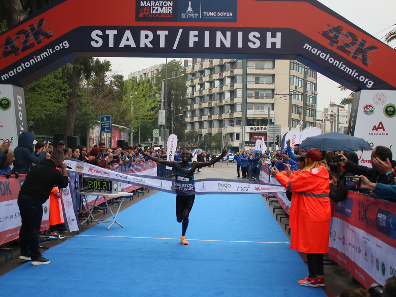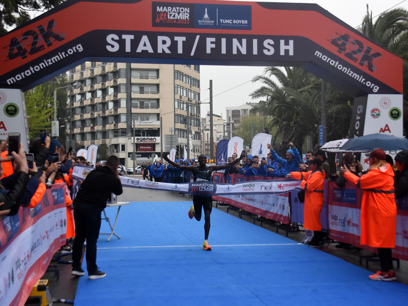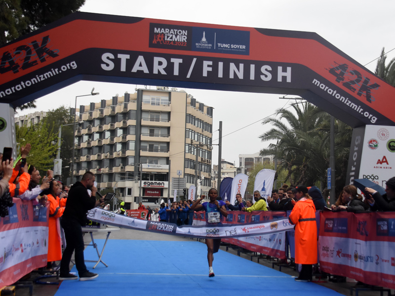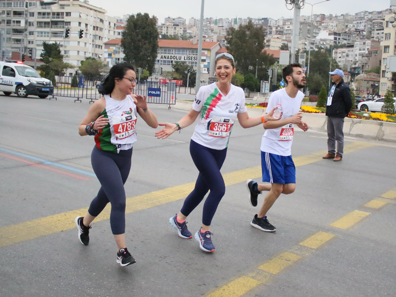 Birleşmiş Milletler’in “Sürdürülebilir bir Dünya” için belirlediği 17 Küresel Amaç doğrultusunda “Atıksız Maraton” hedefiyle koşulan 42 kilometrelik uluslararası yarışa 43 farklı ülkeden 500’ün üzerinde koşucu katıldı. 10 kilometrelik yarışta ise 5 bine yakın sporcu start aldı. Dünya Atletizm Federasyonu’nun Road Race Label (Uluslararası Yol Koşusu Sertifikası) unvanı verdiği Maratonİzmir’in startını, İzmir Büyükşehir Belediyesi Genel Sekreter Yardımcısı Ertuğrul Tugay, Türkiye Atletizm Federasyonu Başkanı Fatih Çintimar, İzmir Büyükşehir Belediyesi Gençlik ve Spor Hizmetleri Dairesi Başkanı Hakan Orhunbilge ve İzmir Büyükşehir Belediyesi Gençlik ve Sor Kulübü Başkanı Ersan Odaman birlikte verdi.