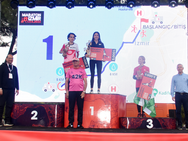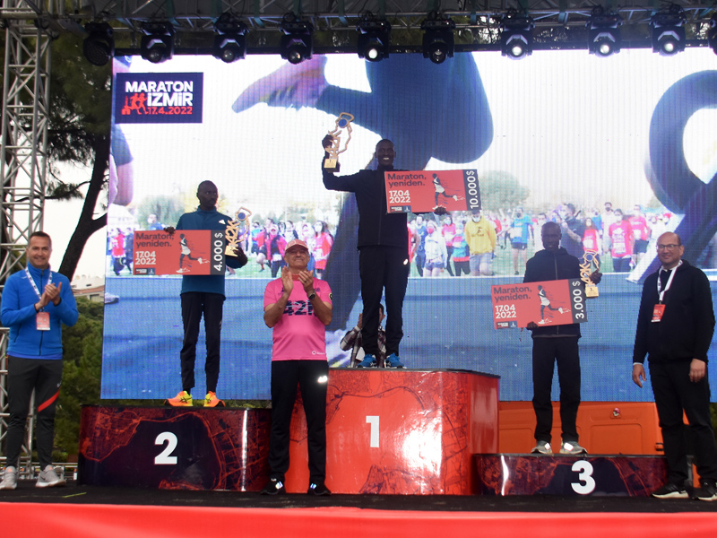 Rekorla sonra eren Maratonİzmir'de 42K ve 10 K'da dereceye girenlerin ödüllerini Atletizm Federasyonu Başkanı Fatih Çintimar, Yönetim Kurulu Üyeleri Nihat Bağcı ve Sercan Doğan, Genel Sekreter Satılmış Atmaca, İzmir Büyükşehir Belediyesi Genel Sekreter Yardımcısı Ertuğrul Tugay, İzmir Büyükşehir Belediyesi Gençlik ve Spor Hizmetleri Daire Başkanı Hakan Orhunbilge, İzmir Büyükşehir Belediyesi Gençlik ve Spor Kulübü Başkanı Ersan Odaman verdi.