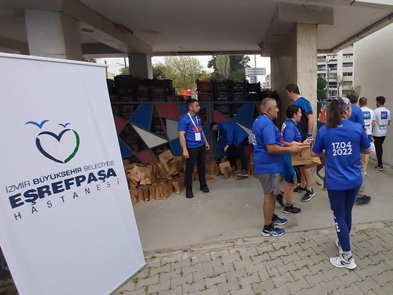 İZMİR Büyükşehir Belediyesi'nin üçüncüsünü düzenlediği Maratonİzmir'de İzmir Büyükşehir Belediyesi Eşrefpaşa Hastanesi kusursuz bir sağlık hizmeti sundu. Başhekim Dr. Devrim Demirel ve Başhekim Yardımcısı Dr. Yavuz Uçar, organizasyon süresince sağlık ekibi ile birlikte aktif görev aldı. Dr. Mesut Nalçakan’ın sağlık hizmetleri direktörü olarak görev yaptığı ekipte tam donanımlı acil çadırında acil tıp, kardiyoloji uzmanı ve 6 paramedik, fizyoterapi çadırında 8 fizyoterapist, parkurda ve bitiş çizgisinde tam donanımlı 7 ambulans, acil yardım için parkurda 20 bisikletli doktor, bitiş çizgisinde 18 sağlık gözetim ekibi toplam 78 kişilik bir sağlık ordusu görev yaptı. Dr. Yıldırım Gezgin, tıp fakültesi ve acil ve ilk yardım bölümü öğrencileri ile bitiş çizgisinde sağlık gözetim ekibinin, Dr. Ezgi Şeker acil çadırının koordinasyonunu yürüttü. Parkurda oluşan sağlık sorunlarına kısa sürede bisikletli doktorlar müdahale ettiler. Yarış sonrası sağlık hizmetleri ilkyardım ve fizyoterapi çadırlarında verildi. Koşuya katılan sporcular özellikle parkurda bisikletli doktorların olması nedeniyle kendilerini daha çok güvende hissettiklerini bildirdiler.