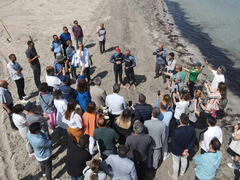 İZMİR Büyükşehir Belediyesi Gençlik ve Spor Kulübü’nün özel sporcusu Tuna Tunca, önemli bir başarıya imza attı. Otizmli yüzücümüz, geçtiğimiz ay trafik kazasında kaybettiğimiz atlet Ata Yahşi’nin anısına Türkiye-Yunanistan arasında kulaç attı. Sakız Adası’ndan bugün sabah 10.00’da denize giren sporcumuz, antrenörü Mert Onaran ile birlikte 11 kilometre 500 metrelik parkuru 3 saat 44 dakikada tamamlayıp Çeşme’deki Pırlanta Koyu’ndan karaya çıktı. Genç sporcu, Sakız Adası ile Çeşme arasını yüzen ilk otizmli sporcu olmayı başardı. Daha önce Çanakkale Boğazı ve İstanbul Boğazı'nı bir kaç kez geçen ve birçok ulusal ile uluslararası açık su yarışında başarılı dereceleri olan Tuna, bu sabahki performansıyla ilk kez açık su geçişi de yapmış oldu.