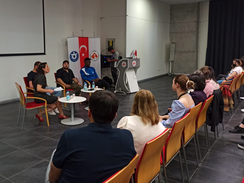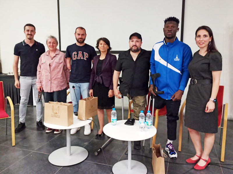 İZMİR Büyükşehir Belediyesi Gençlik ve Spor Kulübü Ampute Takımı, İzmir Ekonomi Üniversitesi’nin konuğu oldu. İzmir Ekonomi Üniversitesi’nin Engelliler Haftası kapsamında düzenlediği “Sporla engelleri aşıyoruz” söyleşisine kulübümüzün Ampute Futbol Takımı Antrenörü Evren Uyanık ile sporcularımızdan Erdi Aslan ve İzuchukwu Nwachukwu katıldı. Dr. Öğr. Üyesi Barış Gürpınar’ın moderatörlüğünde yapılan söyleşiyİ 100’ün üzerinde öğrenci izledi. Antrenörümüz Evren Uyanık, Türkiye’de ampute futbolun en başarılı dallardan biri olduğunu belirtirken, İzmir Büyükşehir Belediyesi’nin ampute futbola önemli destekler sağladığını dile getirdi. Sporcumuz Erdi Aslan, engellerini sporla nasıl avantaja çevirdiklerini anlatırken, Nwachukwu da her geçen gün Türkiye’de ampute futboluna yatırımın arttığını ve bunun da başarılar getirdiğini vurguladı.