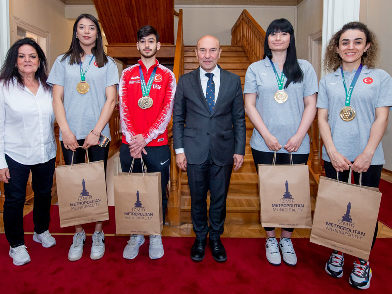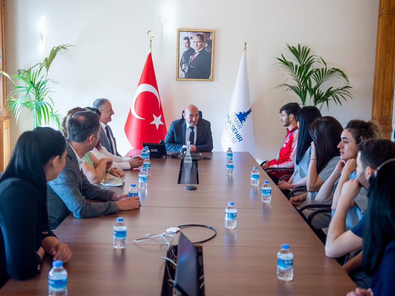 İZMİR Büyükşehir Belediye Başkanı Tunç Soyer, Brezilya’da düzenlenen 24. İşitme Engelliler Yaz Olimpiyatları’nda (Deaflympics) şampiyon olan Türkiye İşitme Engelliler Kadın Voleybol Milli Takımı oyuncuları ve olimpiyatlar tekvando poomsae bireysel olimpiyat üçüncüsü Yusuf Şiyar Kıran’la bir araya geldi. Başkan Soyer, İzmirli genç sporcuların kazandığı başarıların kendisini gururlandırdığını ifade etti.